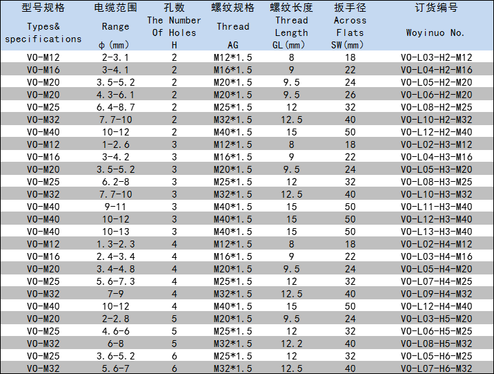 VO-L-H金屬多孔電(diàn)纜防水接頭習還