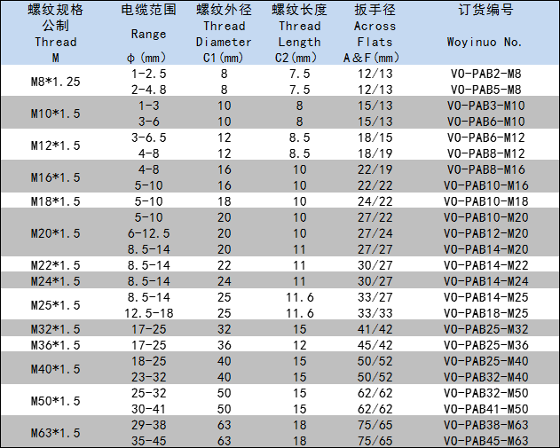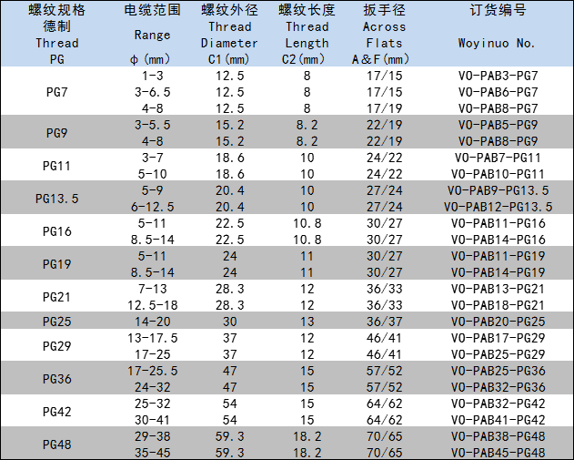 使用方法:VO-PAB型尼龍電(diàn)物湖纜接頭是電(diàn)纜的配套産品,接頭可将電(diàn)纜鎖緊,另一(照林yī)端可接入設備箱體(tǐ)上,也可以根據選用螺紋,接入很喝進出口為内螺紋的電(diàn)動設備上。