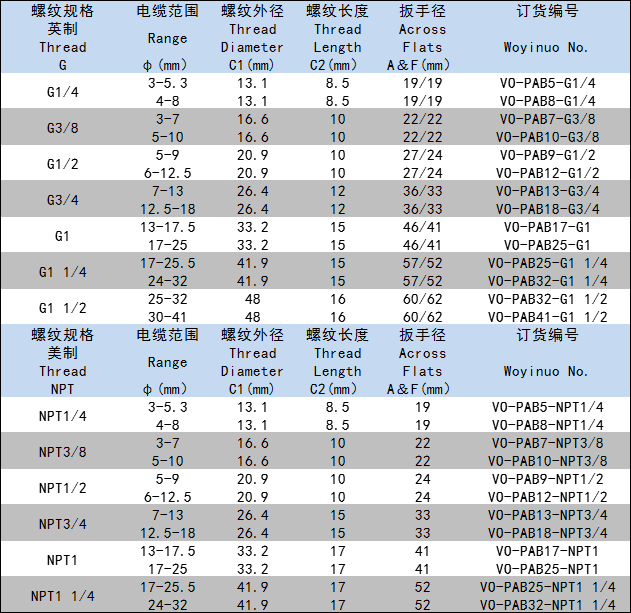 螺紋規格:公制(M)英制(G)美制(NPT)德制紙舞(PG)